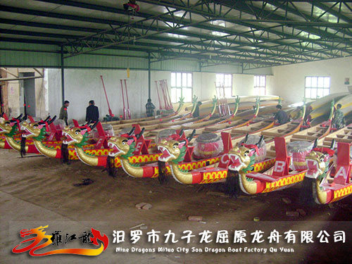 汨羅市九子龍屈原龍舟有限公司2013年成立于湘楚文化屈原圣地-----汨羅江畔。它既是龍舟競渡的源頭,又是祖輩制造龍舟的基地。廠長許桂生從事龍舟制作已有30余年歷史,為繼承祖?zhèn)髦圃忑堉鄹挥幸欢ǖ慕?jīng)驗(yàn)。我廠是全國新型混合龍舟生產(chǎn)基地;中國龍舟協(xié)會器材委員會委員;通過了ISO9001國際質(zhì)量體系認(rèn)證。本廠其獨(dú)特的制作工藝成為了非物質(zhì)文化遺產(chǎn)傳承廠家。自一九八九年開始生產(chǎn)國際標(biāo)準(zhǔn)龍舟以來,岳陽市歷屆賽事龍舟均由本廠員工生產(chǎn),湖南省岳陽九子龍龍舟公司生產(chǎn)的龍舟都是現(xiàn)任廠長負(fù)責(zé)技術(shù)和組織工人的,其產(chǎn)品曾銷往北京第六屆民運(yùn)會、上海三龍邀請賽、上海第四屆錦標(biāo)賽、吉林冬運(yùn)會。現(xiàn)在本廠融入沿海玻璃鋼技術(shù),保留了傳統(tǒng),提高了產(chǎn)品質(zhì)量,現(xiàn)生產(chǎn)各種型號國際標(biāo)準(zhǔn)龍舟及各種民間龍舟...